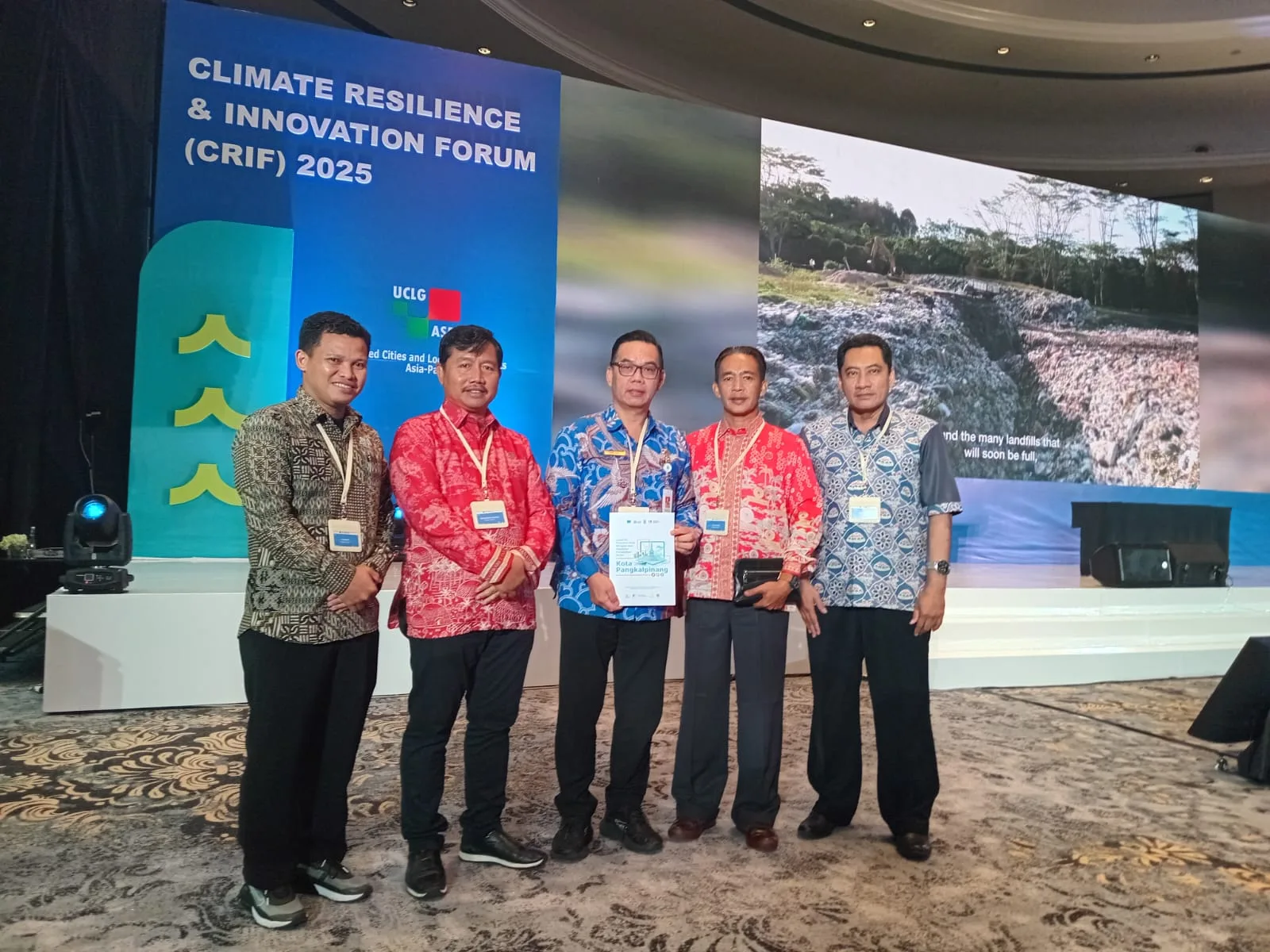 Sekda Kota Pangkalpinang pada CRIF 2025 di Jakarta didampingi oleh Kepala DLH, Kepala BPBD, Bapperida dan Bidang Persampahan. (adv/sywl)
