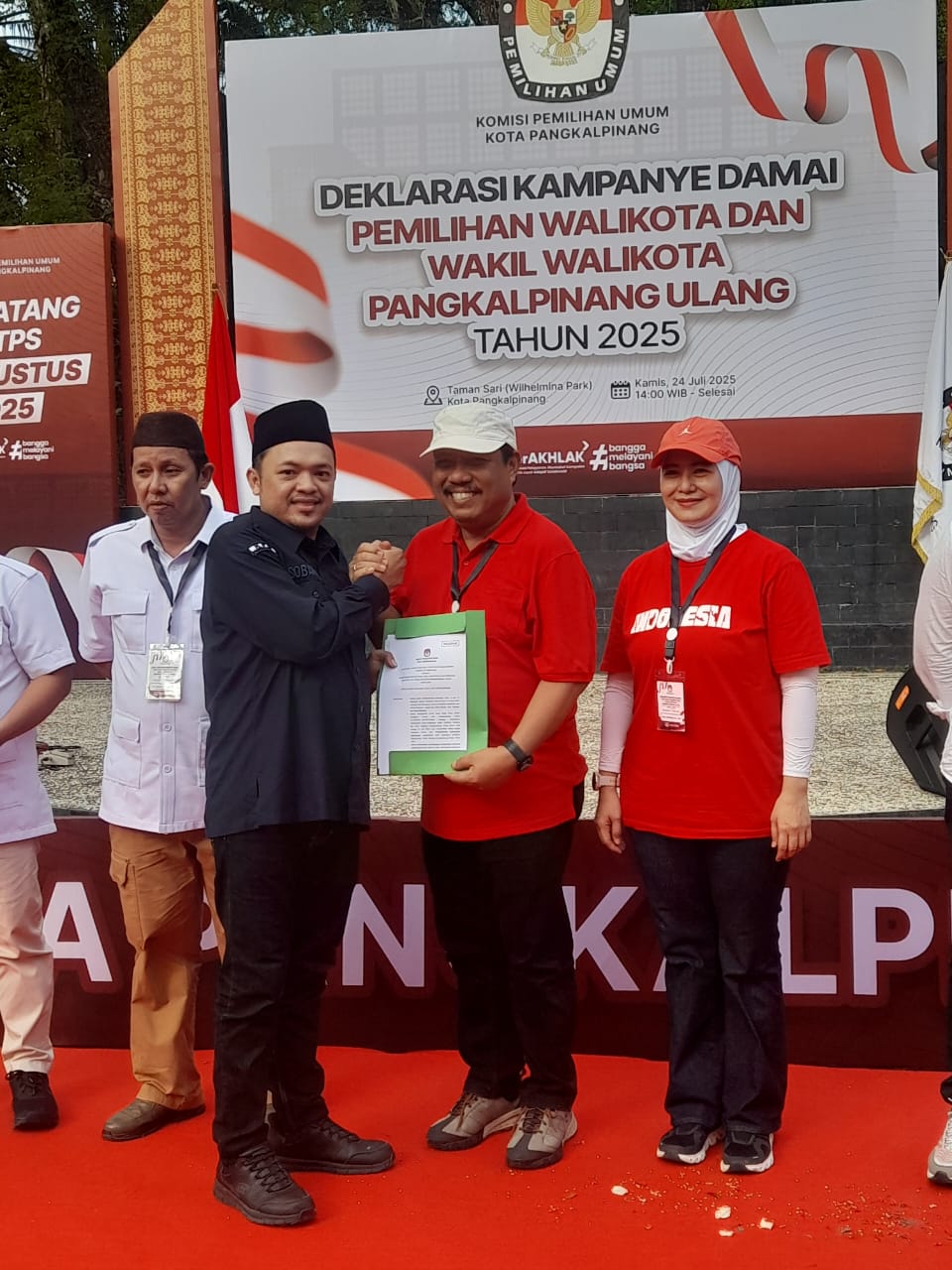 Komitmen itu diungkapkan pasangan yang akrab disapa Prof Udin-Cece Dessy ini saat menghadiri Deklarasi Kampanye Damai yang digelar Komisi Pemilihan Umum (KPU) Pangkalpinang, di Wilhelmina Park, Kamis (24/7/2025).