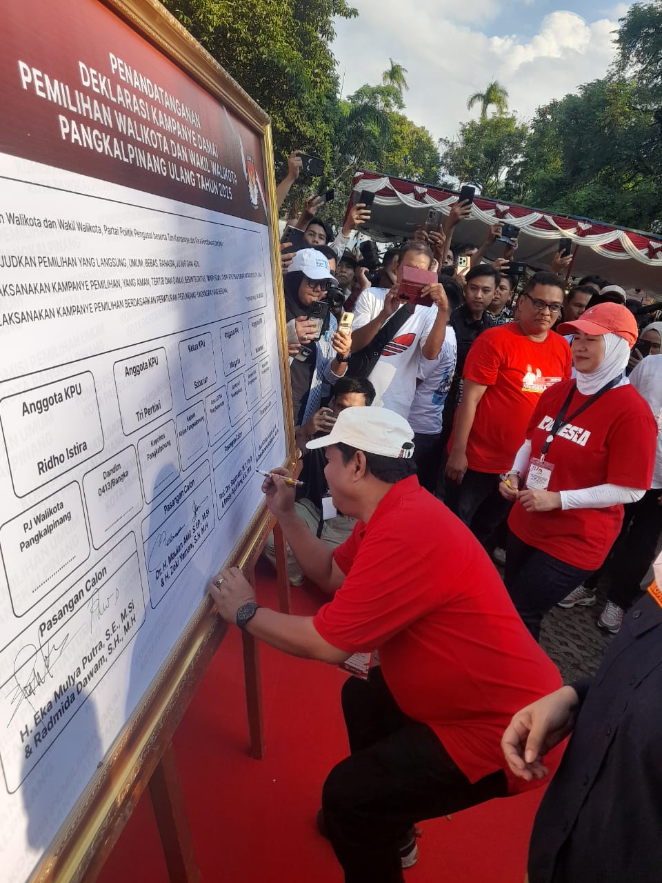 Komitmen besar dari penyandang gelar Profesor itu disampaikan kala ia dan pasangannya dalam Pilkada Ulang Pangkalpinang 2025, Dessy Ayutrisna mendeklarasikan diri menciptakan pemilu damai, di Wilhelmina Park, Kamis (24/7/2025) kemarin.