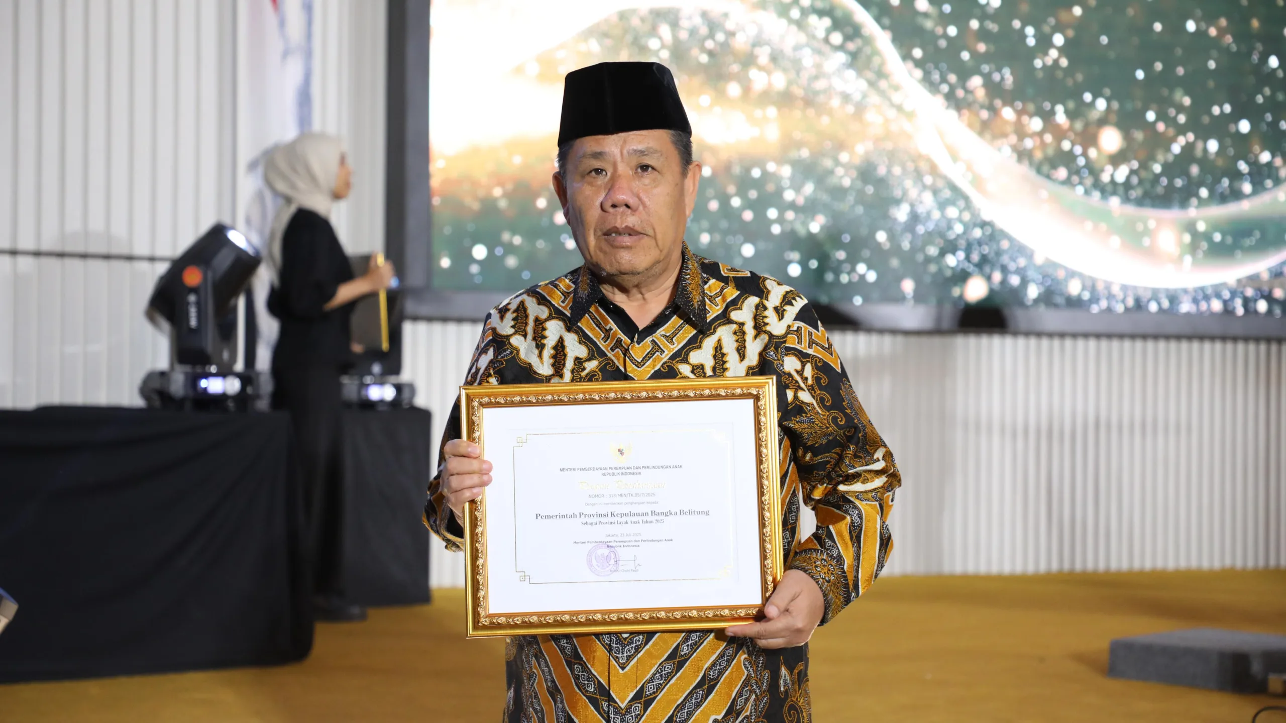 JAKARTA, aquilaindonesia.com – Gubernur Kepulauan Bangka Belitung (Babel) Hidayat Arsani menerima penghargaan Provinsi Layak Anak pada Malam Penganugerahan Kabupaten/ Kota Layak Anak (KLA) Tahun 2025 yang diselenggarakan oleh Kementerian Pemberdayaan Perempuan dan Perlindungan Anak (KPPPA) RI.