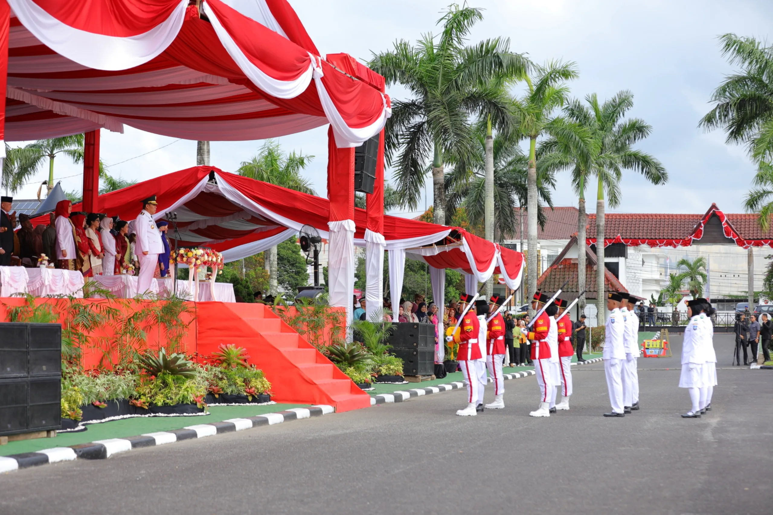 Peserta upacara yang terdiri dari unsur TNI/Polri, ASN, pelajar, serta tokoh masyarakat tampak serempak mengenakan busana adat daerah serta pakaian dinasnya masing-masing, menambah semarak dan kebanggaan dalam peringatan kemerdekaan tahun ini. Didukung cuaca cerah serta kekompakan seluruh elemen yang terlibat, upacara HUT RI ke-80 di Provinsi Kepulauan Bangka Belitung yang berlangsung sukses menjadi momentum penting untuk meneguhkan tekad melanjutkan perjuangan para pahlawan, demi masa depan Babel yang lebih cerah. (rill/adv)