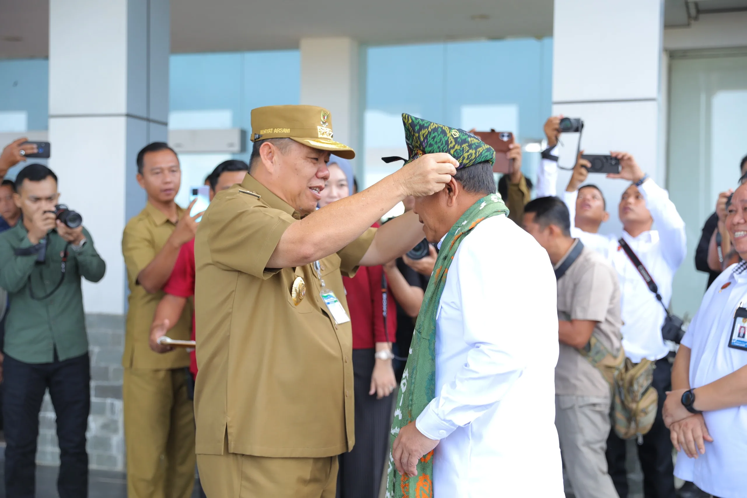 Kedatangan Kepala BIN ke Negeri Serumpun Sebalai dalam rangka kunjungan kerja ini disambut dengan hangat melalui prosesi penyambutan khas Melayu. Gubernur menyematkan kain cual sebagai penghargaan kepada pejabat negara.