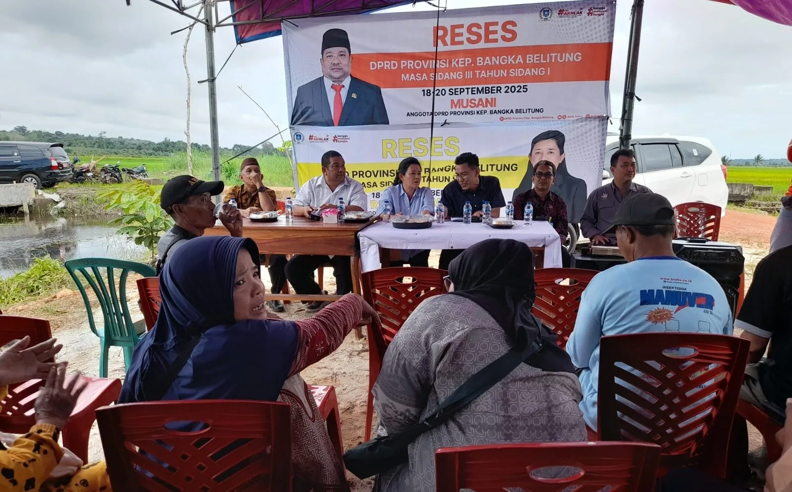 Dalam reses di Desa Serdang, Rabu (17/9/2025), Anggota DPRD Babel Rina Tarol dan Musani menegaskan akan menindaklanjuti keluhan masyarakat agar alih fungsi lahan tanpa izin segera dihentikan.